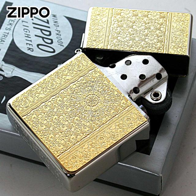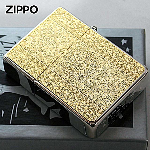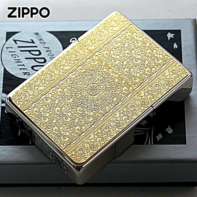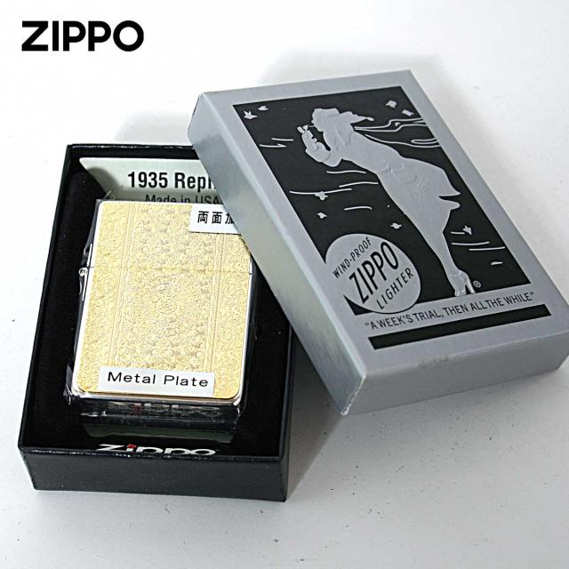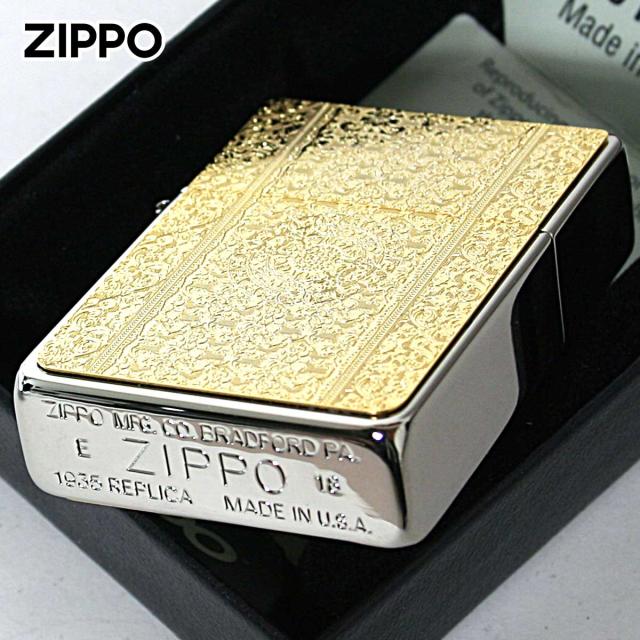 Zippo ジッポライター 1935レプリカ ダマスク柄 ゴールド DAMASK White Nickel & Metal C G・G メール便専用商品