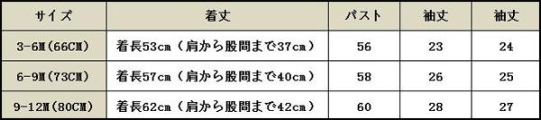 【3-6M/66cm】 着長53cm(肩から股間まで37cm) バスト56cm 袖丈23cm 肩幅24cm