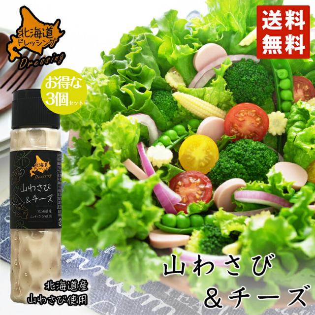 北海道ドレッシング 山わさび&チーズ 180ml 3個セット 送料無料 北海道 ドレッシング 山わさび チーズ サラダ 料理 野菜 シーザー お土産 ギフト プレゼント 贈り物
