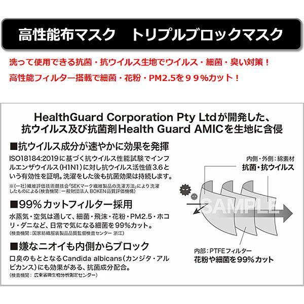 洗える マスク トリプル ブロック マスク 細菌 飛沫 花粉 PM2.5 ホコリ ダニ 99%カット 抗ウイルス 抗菌剤 含侵綿素材 PTFEフィルター 三層構造 高性能フィルター ニオイ ブロック