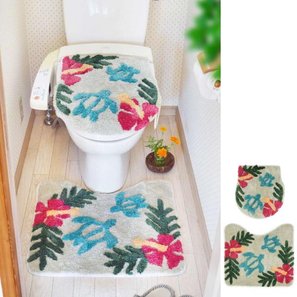 ハワイアン トイレ 洋式 ふたカバー マット 2点セット インテリア マット