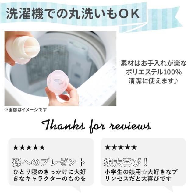 | 商品説明 | ・キャラクター柄がとってもファンタジック!「ふとんカバー 3点セット」が発売。 ・人気のキャラクターをダイナミックにプリントした掛布団カバー/シーツ/枕カバーがワンセットに♪ ・掛布団カバーはサイドの一辺がファスナーで全開する仕様。内側には「布団のかたより」を防ぐテープ付き。 ・シーツは全周がゴム仕様になっていて、布団とマットレス(厚み20cm程度)の両方で使うことが可能! ・枕カバーの開口部はファスナーを使用していないので、顔に当たる部分がゴロゴロせずに快適。 ・素材はお手入れが楽なポリエステル100%。洗濯機での丸洗いもOK! ・大好きなキャラクターに包まれてぐっすり眠って♪ |