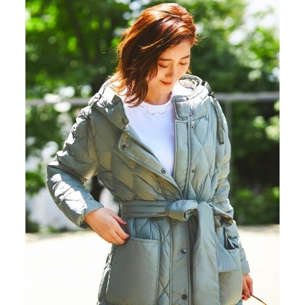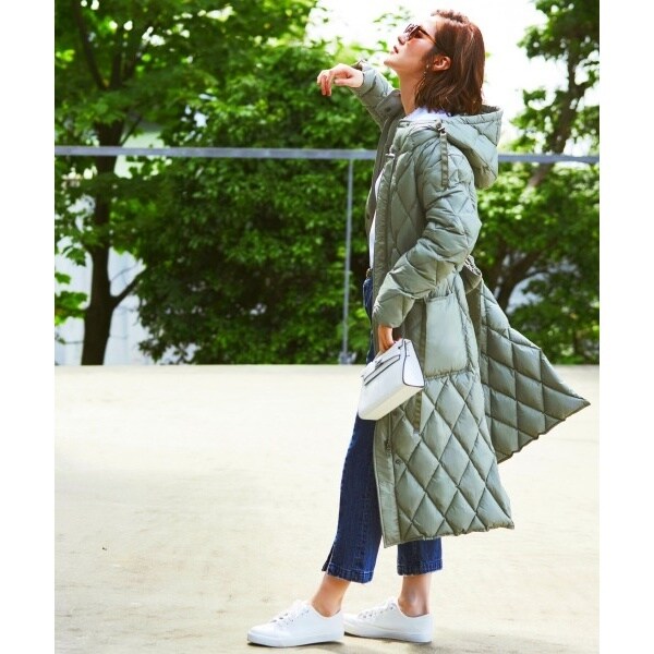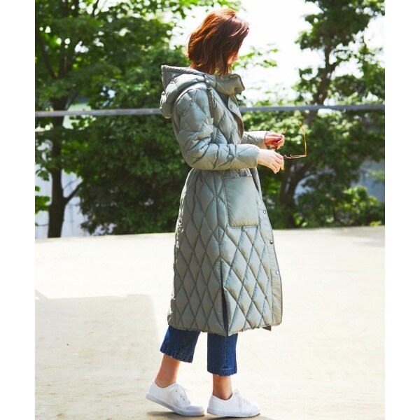 上品な印象を与えてくれるダイヤモンドキルティングのダウンコート。