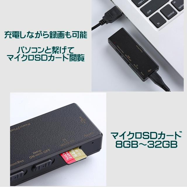 【充電録画】充電しながら録画も可能ですので電池切れの心配はいりません。その他、モバイルバッテリーからの給電もOK!(5V1A)
