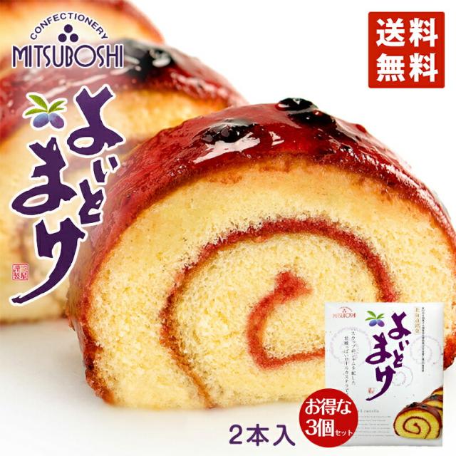 日本一食べずらいでも、食べるとうまい! 三星 よいとまけ 2本入り 3個セット 送料無料 北海道 ハスカップ ロールカステラ 洋菓子 人気 お土産 手土産 ギフト 贈り物 バレンタイン