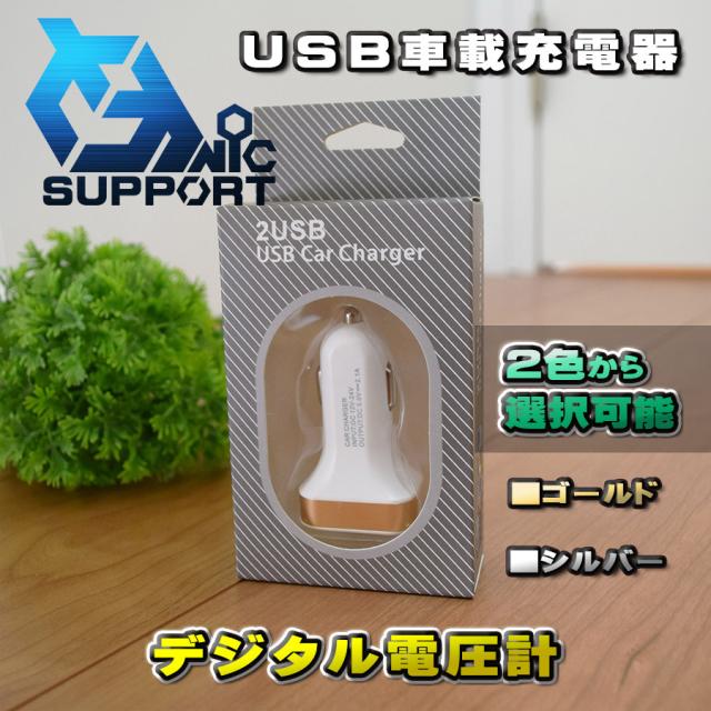 【ゴールド】 USB車載充電器 デジタル電圧計 USB 2ポート 数字電圧計 シガーソケット (2色から選択可能)化粧箱入り