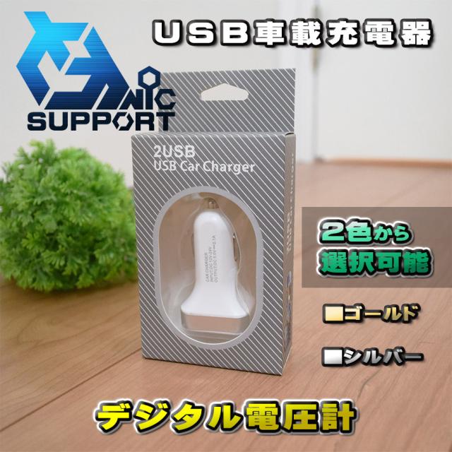 【シルバー】 USB車載充電器 デジタル電圧計 USB 2ポート 数字電圧計 シガーソケット (2色から選択可能)化粧箱入り