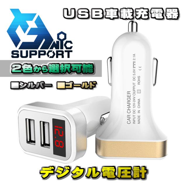 【シルバー】 USB車載充電器 デジタル電圧計 USB 2ポート 数字電圧計 シガーソケット (2色から選択可能)