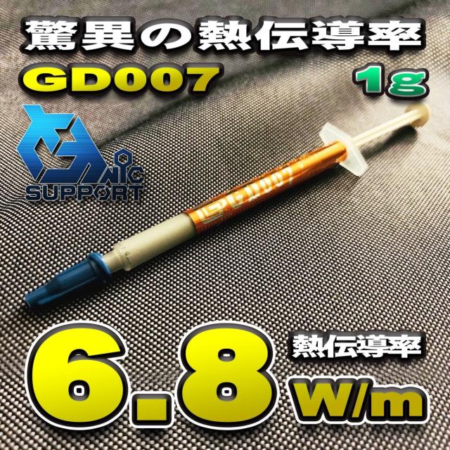 【GD007】驚異の熱伝導率 6.8W/m CPUグリス 1g GD007 超高性能 シリコン ヒートシンク x 1本 【メカニックサポート】