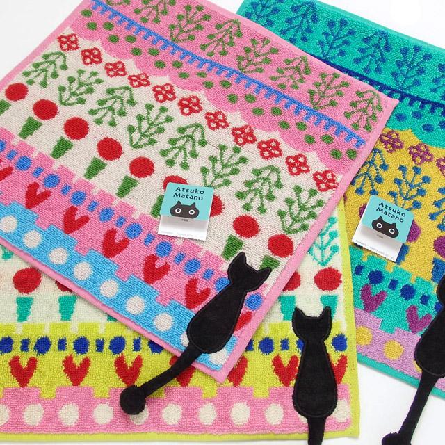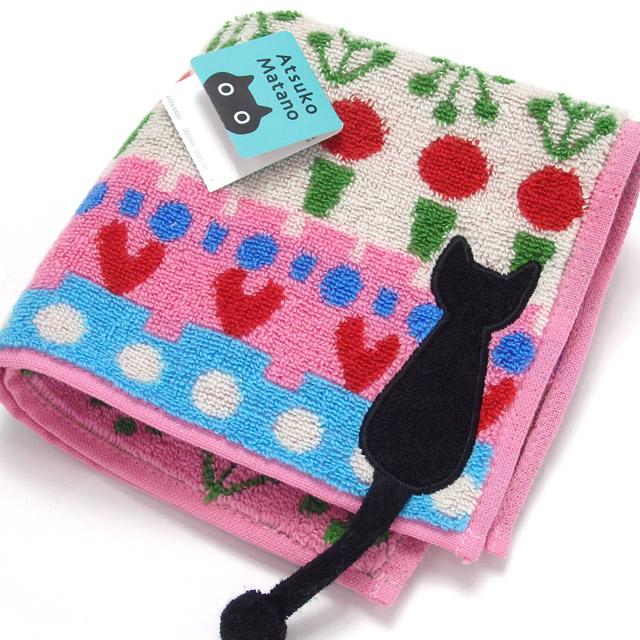 タオルハンカチ 猫柄 ブランド 黒猫 マタノアツコ スペインの庭 綿100% 手拭 ハンドタオル キャット レディース かわいい おしゃれ ギフト プレゼント 景品 粗品【 誕生日 】 母の日