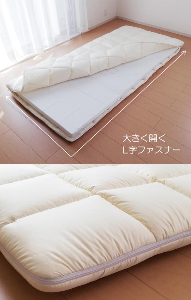 側生地、中芯それぞれを洗うことができるので、敷布団をいつも清潔にお使いいただけます。