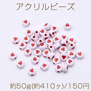 アクリルビーズ コイン型 7mm ハート柄 ホワイト【約50g(約410ヶ)】
