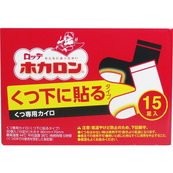 使い捨てカイロ 靴下用 くつ下に貼るカイロ ロッテ ホカロン くつ専用 15個入 日本製