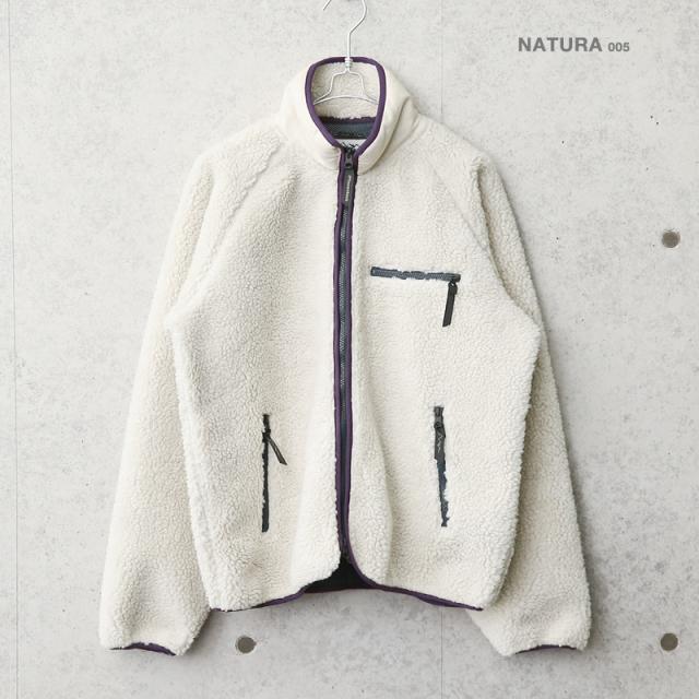 表地には毛足が長く、手触りの良いポリエステル100%素材を採用。裏地には薄い防風・透湿フィルムを貼り、メッシュとボンディングしたMANASTASHオリジナル素材を使用。風の侵入を防ぐと同時に、汗の水蒸気を排出し、体温の低下を軽減します。フロントは首もとまでしめられるダブルジッパー、袖にはパイピングが施され風の侵入を防ぎます。 強度が必要な肘部分にはHEMP COTTON TWILLをつかったパッチがついていたり、手袋をした状態でもつかみやすい引手の付いたYKK社製ジッパー、後ろの裾のリフレクターや襟裏のさりげないロゴなど、デザイン・ディテールともにこだわり抜いた一着です。