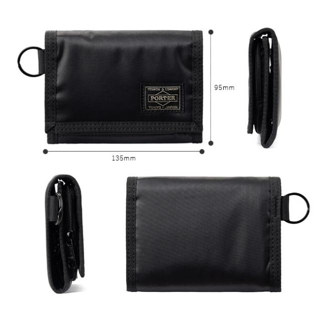 | ブランド |ポーター / PORTER シリーズ |カプセル / CAPSULE 品番 |555-06439 形状 |三つ折り財布 / 小銭ボタン内側 外寸 |W135×H95[mm] 重量 |約 85g 素材 |表:ナイロンタフタ(シレー加工 PVC加工 綿ボンディング) |裏:210D ナイロンツイル(ウレタンコーティング) 付属 |キーホルダー |