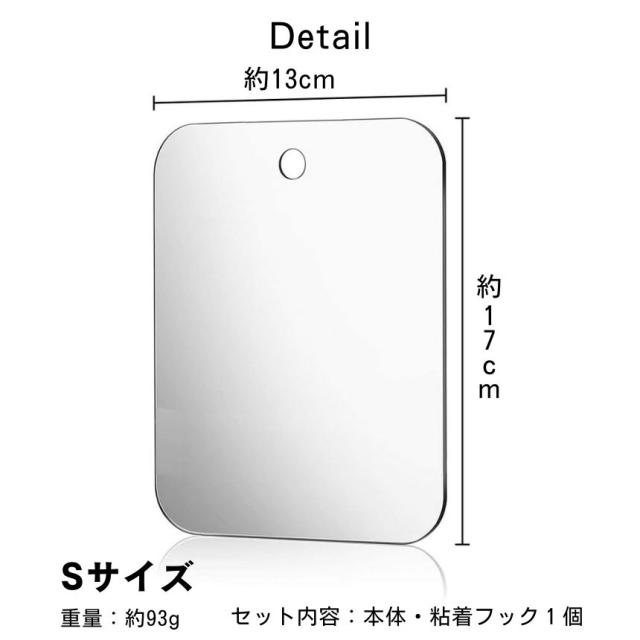 浴室 お風呂 鏡 Sサイズ 風呂 割れない鏡 バスミラー お風呂ミラー バス ミラー 洗面所 くもらないミラー 曇らない鏡 ウォールミラー 吸盤 フック付き くもり止め 壁掛け 吊り下げ 軽量 曇り止め POSITIMI