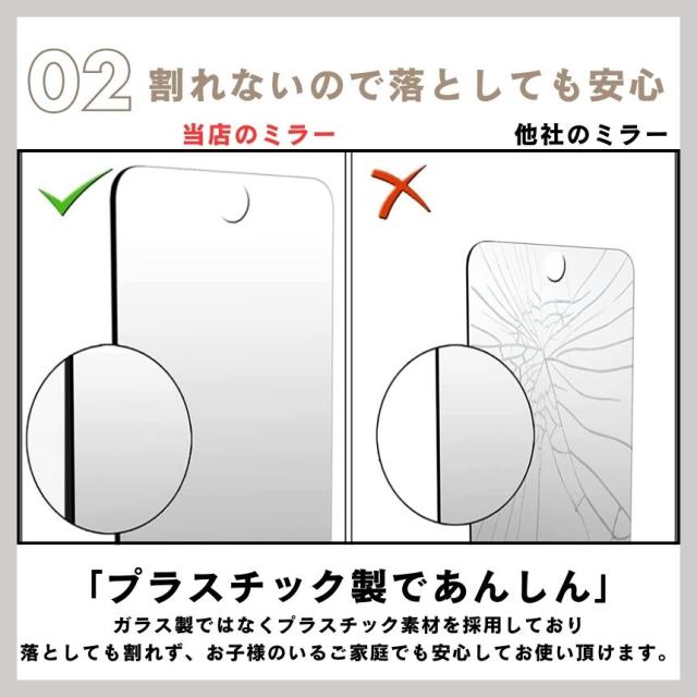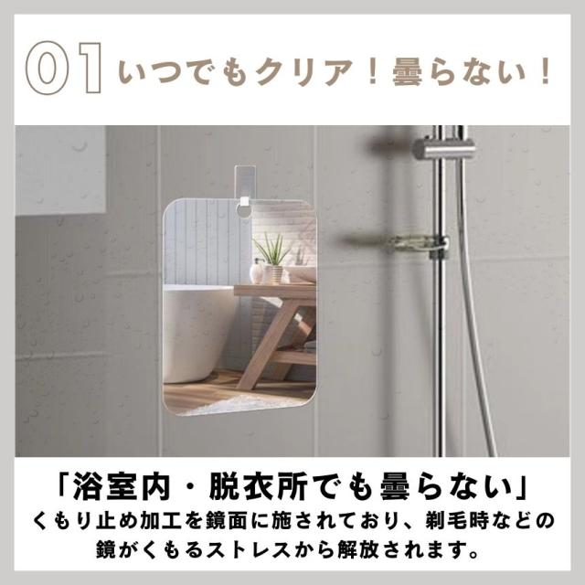 曇らず割れないバスミラーは、取り付け簡単で曇りにくく、割れにくい安全設計。クリアな反射で快適なシェービングやスキンケアができる、便利で実用的なアイテムです。お風呂場での時間をより快適にするために、ぜひお試しください!