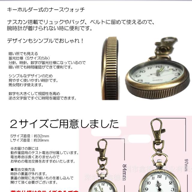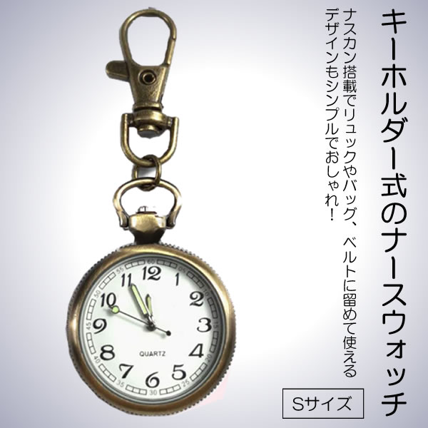 ナースウォッチ 時計 Sサイズ 懐中時計 キーホルダー ナスカン シンプル リュック バッグ ポケット ランドセル SINNASU-S