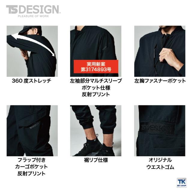 TS DESIGN オーバーオール つなぎ 4D ストレッチ 防寒服 防寒着 帯電防止 軽量 吸汗速乾 SR加工 秋冬 長袖 tw-9110