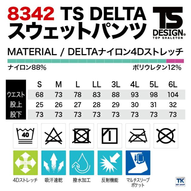 TS DESIGN スウェットパンツ DELTA ストレッチ 作業ズボン 作業着 作業服 ワークパンツ 撥水 ポケット 春夏 秋冬 スラックス tw-8342