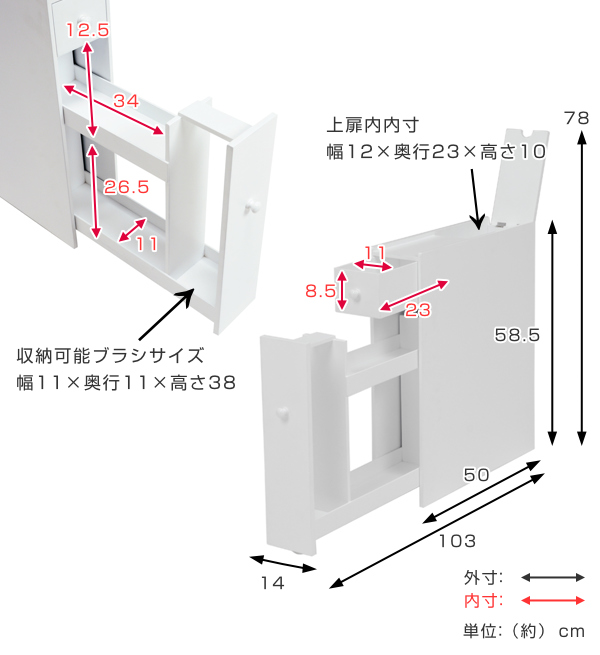 わずか幅14cmで広さの無いお手洗いでもスペースを取らない