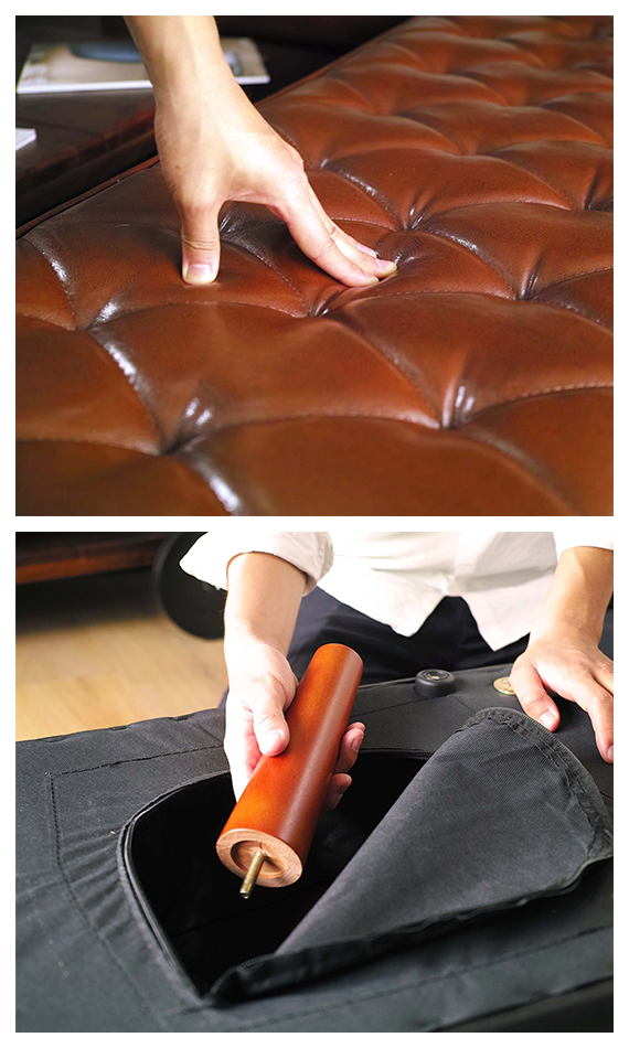 | 材質 | 表面張材:PVC クッション:ウレタンフォーム・Sバネ 構造部材: 天然木・合板 脚部: 天然木 |
