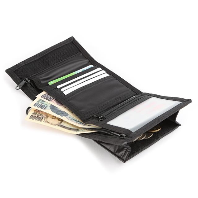 三つ折りタイプ、複数のポケットで仕分けもしやすくなっています。