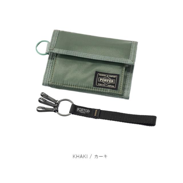 | ブランド |ポーター / PORTER シリーズ |カプセル / CAPSULE 品番 |555-06440 形状 |三つ折り財布 / 小銭ボタン内側 外寸 |W135×H95[mm] 重量 |約 85g 素材 |表:ナイロンタフタ(シレー加工 PVC加工 綿ボンディング) |裏:210D ナイロンツイル(ウレタンコーティング) 付属 |キーホルダー |