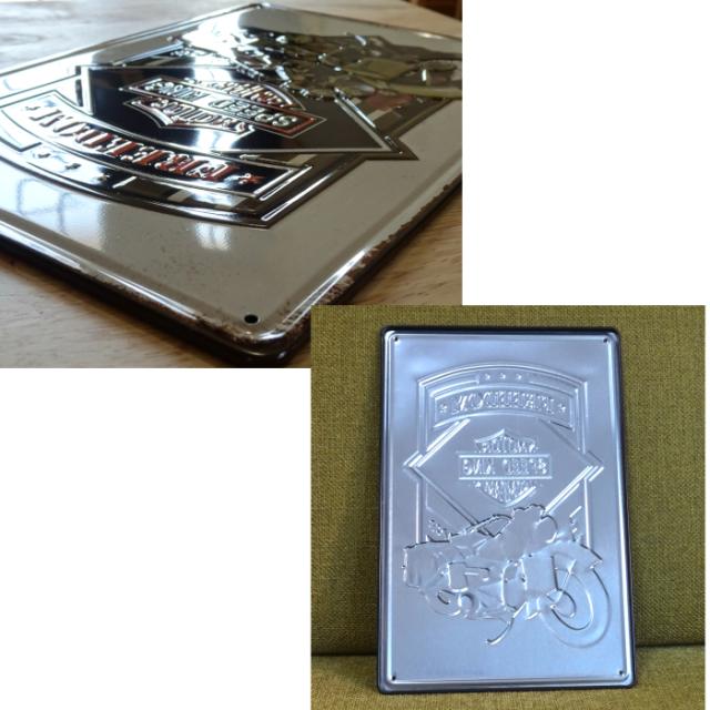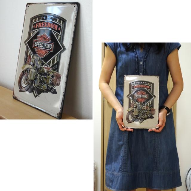 ワイルドなアメリカンバイクがデザインされた、レトロでおしゃれなブリキ看板です。