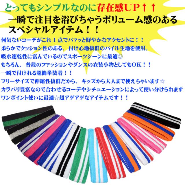 【メール便対応】ヘアバンド hair-acc-156 ヘッドバンド おしゃれ ボーダー ライン スポーツ カラフル【 ダンス 衣装 小物 パイル地 ヒップホップ ヘアアレンジ フリーサイズ 伸縮性 アクセサリー B系 シンプル スタイリッシュ】┃