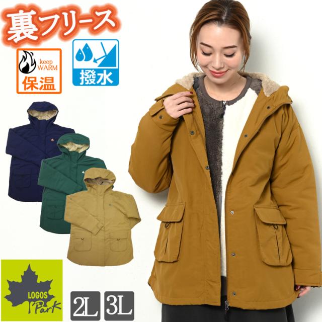ロゴス パーク ウィンドブレーカー レディース 秋 冬 マウンテンパーカー 裏フリース 撥水 中綿 フード付き アウトドア 山ガール ファッション ナイロンパーカージャケット LL 3L 大きいサイズ グリーン ネイビー 秋冬 ブランド あったか ウインドブレーカー 防寒着 裏起毛