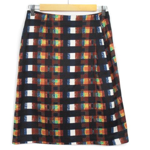 【中古】ファビア FABIA オットー スカート タック 総柄 ジャガード 9 黒 ブラック レディース