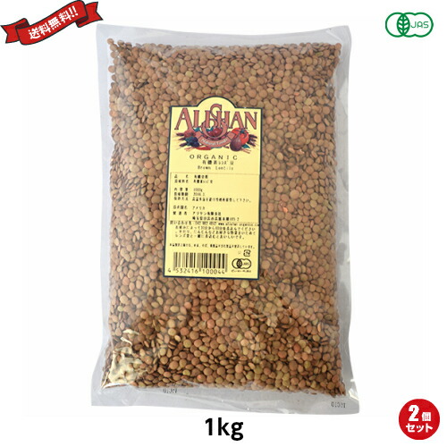 【2/23(月)限定!ポイント最大15%還元!】レンズ豆 オーガニック 有機 アリサン 有機茶レンズ豆 1kg 2袋セット