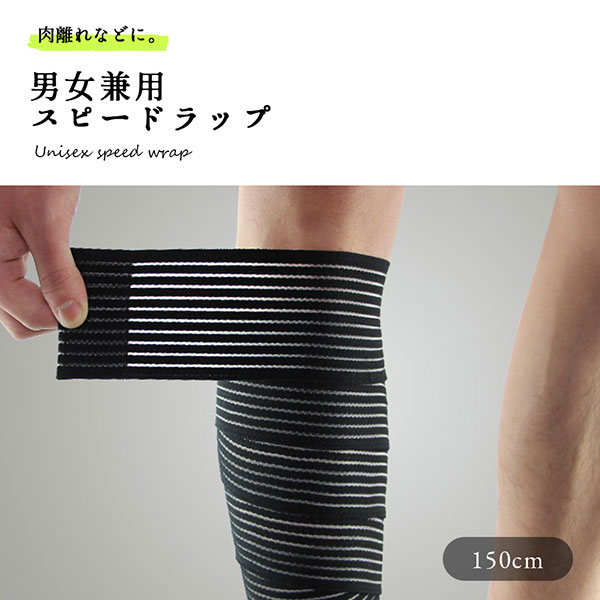 サポーター 膝 腕 スピードラップ ふくらはぎ 肘 肉離れ 男女兼用 ブラック 150cm 送料無料
