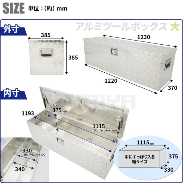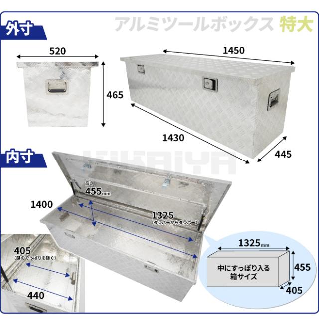 アルミボックス 大/特大セット W1230×D385×H385mm/W1450×D520×H465mm アルミ工具箱 アルミツールボックス KIKAIYA
