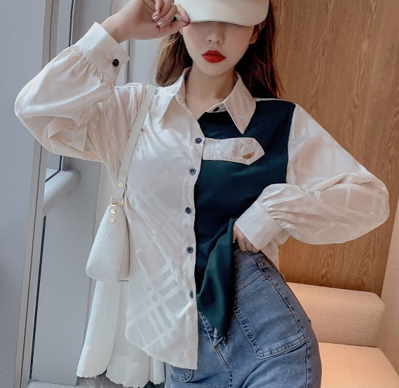 トップス シャツ ブラウス シンプル グリーン イエロー ワインレッド 白 バイカラー Vネック 襟付き 長袖 春秋 大きいサイズ ゆったり 大人可愛い 10代 20代 30代 お出かけ デート クール 上品 トレンド