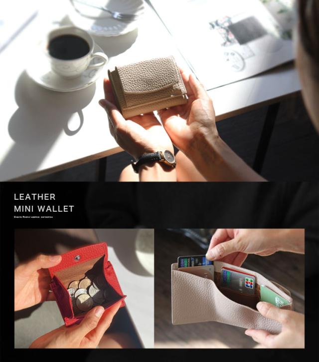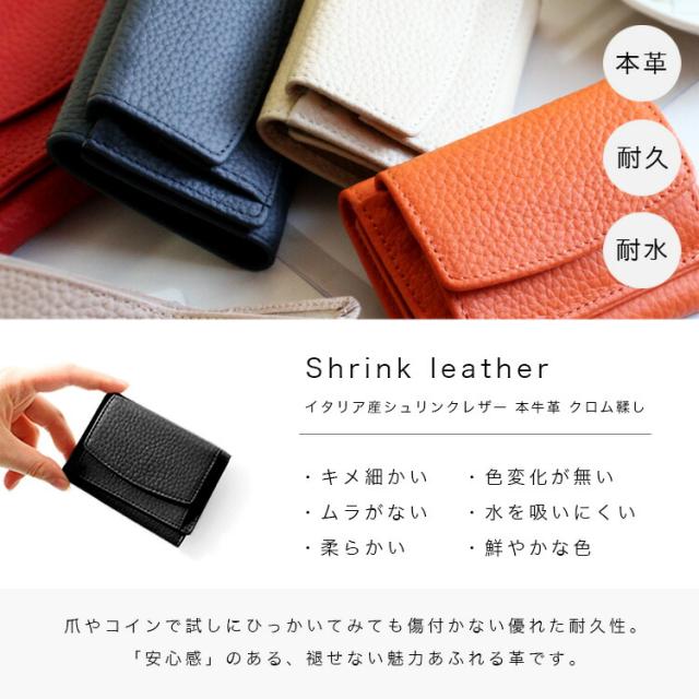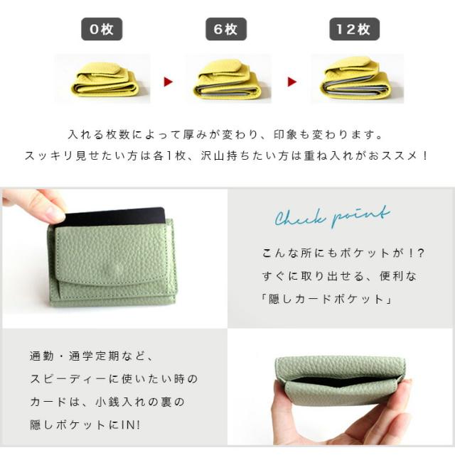 ピンクやイエロー、グリーンといったパステルカラーのシュリンクレザーを使用したキュートさがありながらも”きちんと感”が出せる、大人のミニウォレットです。
