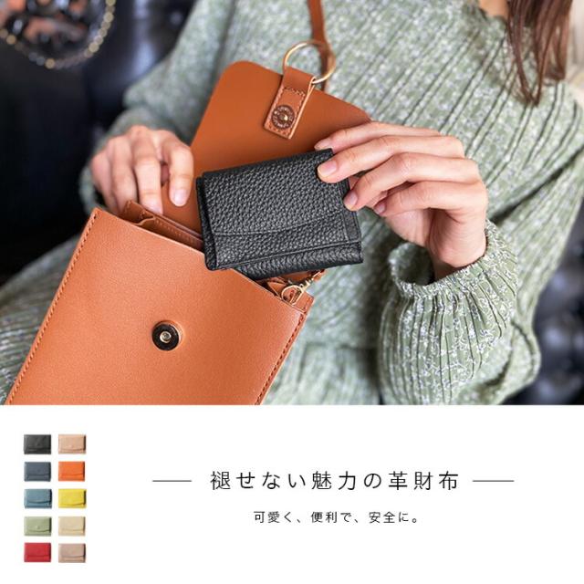 メール便送料無料 カリスポシェ CharisPoche 小さい財布 革財布 3つ折り財布 メンズ レディース ユニセックス 本革 シュリンクレザー キャッシュレス財布 小銭入れ ミニ財布 ブラック ブルー グリーン ピンク イエロー ab-lw005