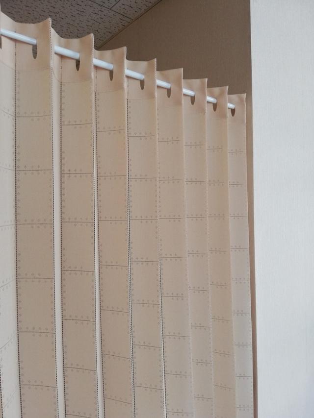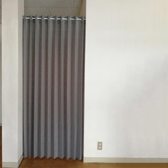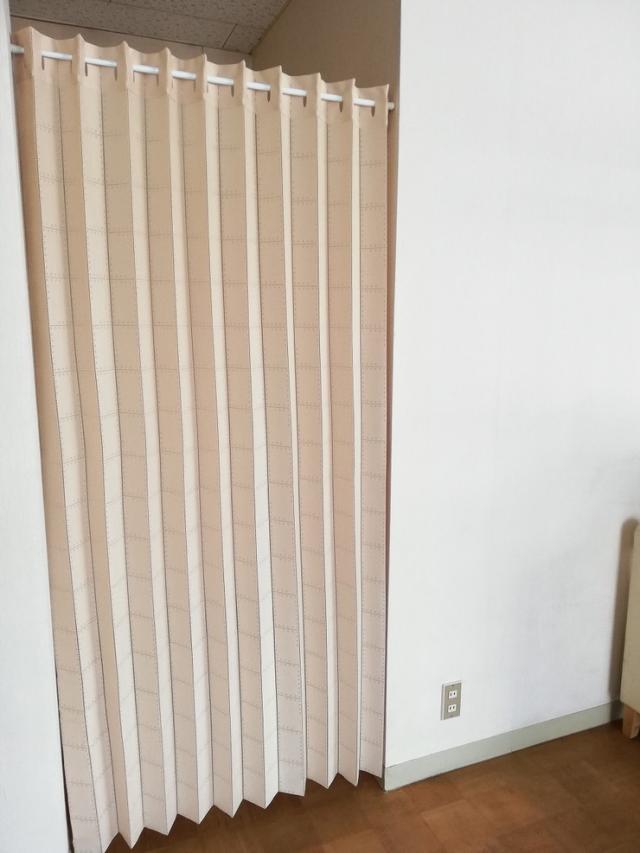 ・ぱたぱたとアコーディオン式にたためるカーテン。フックを取り付けることで、カーテンレールや突っ張り棒を使ってお好きな場所でご使用できる2WAY仕様のカーテンです。