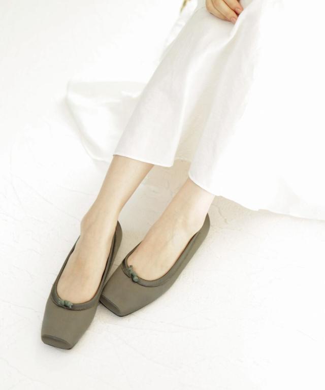 大人っぽくモードな印象のスクエアトゥバレエシューズ。
