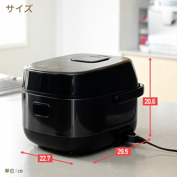 | 商品説明 | ●電源:AC100V(50/60Hz) ●消費電力:500W ●電源コード長さ:約1.0m ●最大炊飯量:3合(0.54L) ●炊飯方式:IH式 ●蒸発水量:21.9g ●年間消費電力:50.2kWh/年 ●1回あたりの炊飯時消費電力:109.8Wh ●1時間あたりの保温時消費電力:16.4Wh ●1時間あたりのタイマー予約時消費電力:1.08Wh ●1時間あたりの待機時消費電力:0.91Wh ●10種類のメニュー搭載 ●温泉卵やローストビーフ等も作れる温度調理機能付き ●ご飯の固さを3種類から選択して炊飯できる ●タイマーは最大23時間50分まで設定可能 ●内釜・しゃもじ・内ぶた、蒸気キャップは丸洗い対応 ●マグネットコード採用 ●本体ハンドル付きで持ち運びに便利 ●付属品:しゃもじ、計量カップ、電源コード ●メーカー保証:1年間 ※2023年5月より型番をYJK-E05(B)⇒YJK-E051(B)に変更しております 【仕様変更点】操作部:温泉卵⇒温度調理に変更しております |