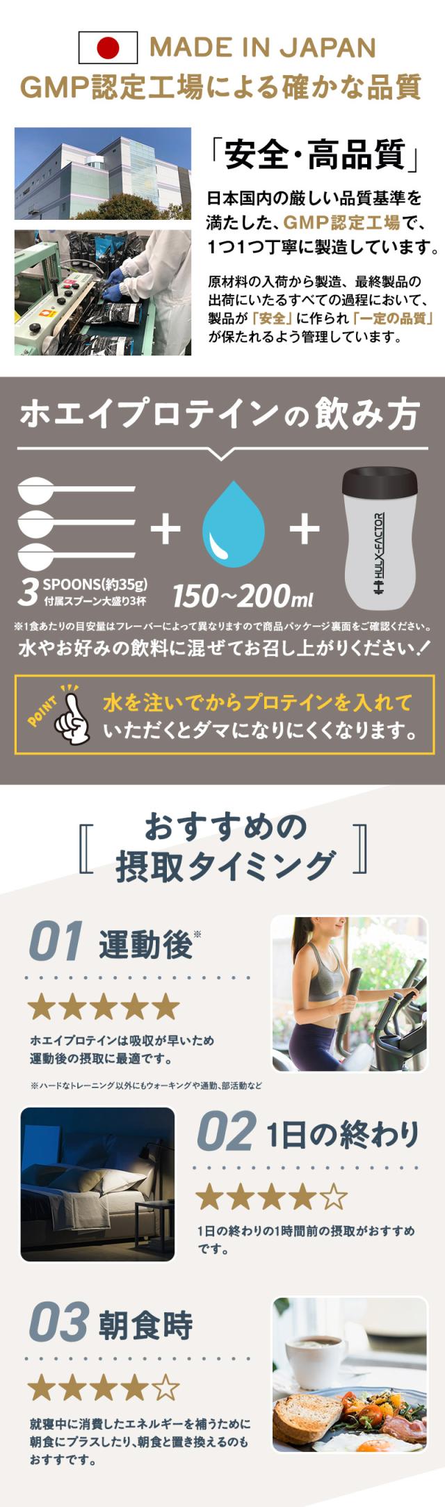 - すぐ溶けるて飲みやすい、ダマにならないのといろいろプロテイン飲みましたが筋肥大がすごい!パンプアップしたいならオススメです、飲みすぎると太ると思うのでご注意を、笑