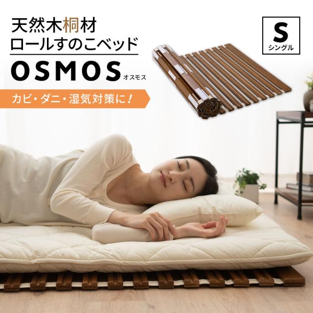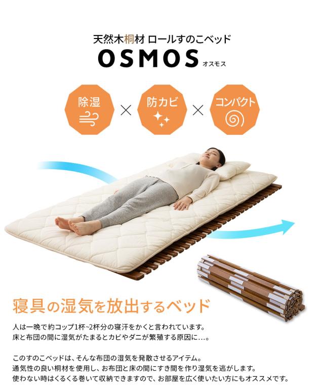 ロールすのこベッド シングル オスモス 桐 通気性 抗菌 除湿 調湿 保温 断熱 ロール式 すのこベッド すのこマット スノコマット 折りたたみベッド すのこ 折りたたみ 折り畳み 木製 ロール ベッド ベット 湿気対策 カビ対策 湿気 コンパクト 北欧 送料無料