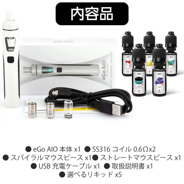 【リキッド5本付】 Joyetech eGo AIO 電子タバコ VAPE ベイプスターターキット 本体 持ち運び シーシャ VAPOREVER リキッド セット おすすめ コンパクト スリム 小型 タール ニコチン0 電子煙草 禁煙 01