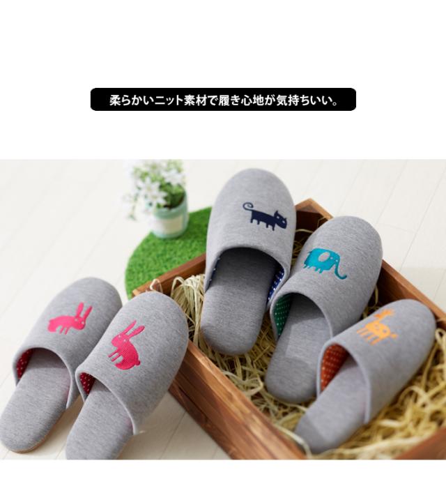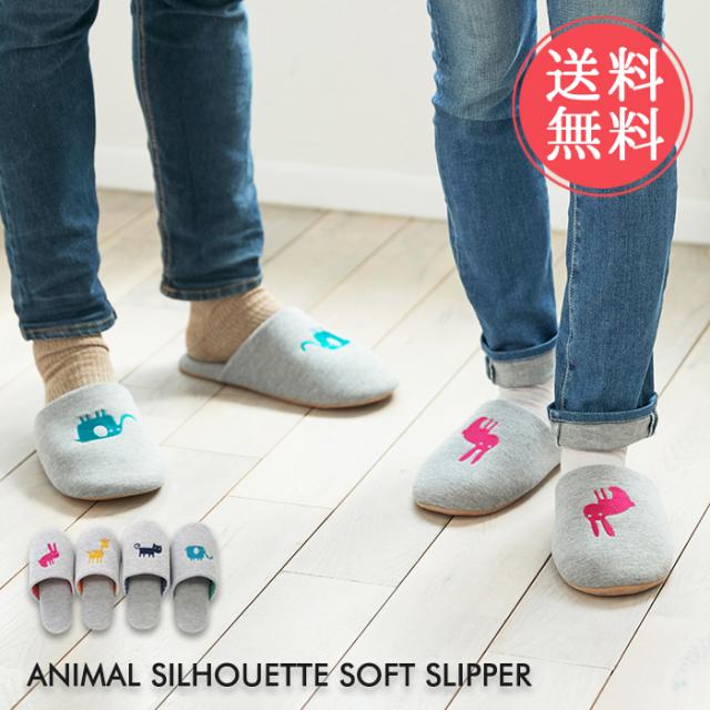 メール便送料無料 アニマルシルエットソフトスリッパ【スリッパ かわいい おしゃれ ニット 洗える うさぎ きりん ねこ ぞう シルエット 刺繍 消音 ペア ファミリー ギフト プレゼント】 fss