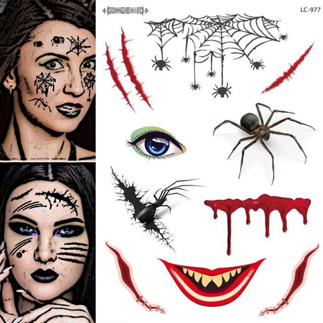クモや蜘蛛の巣、傷をモチーフにした仮装用ステッカー。
