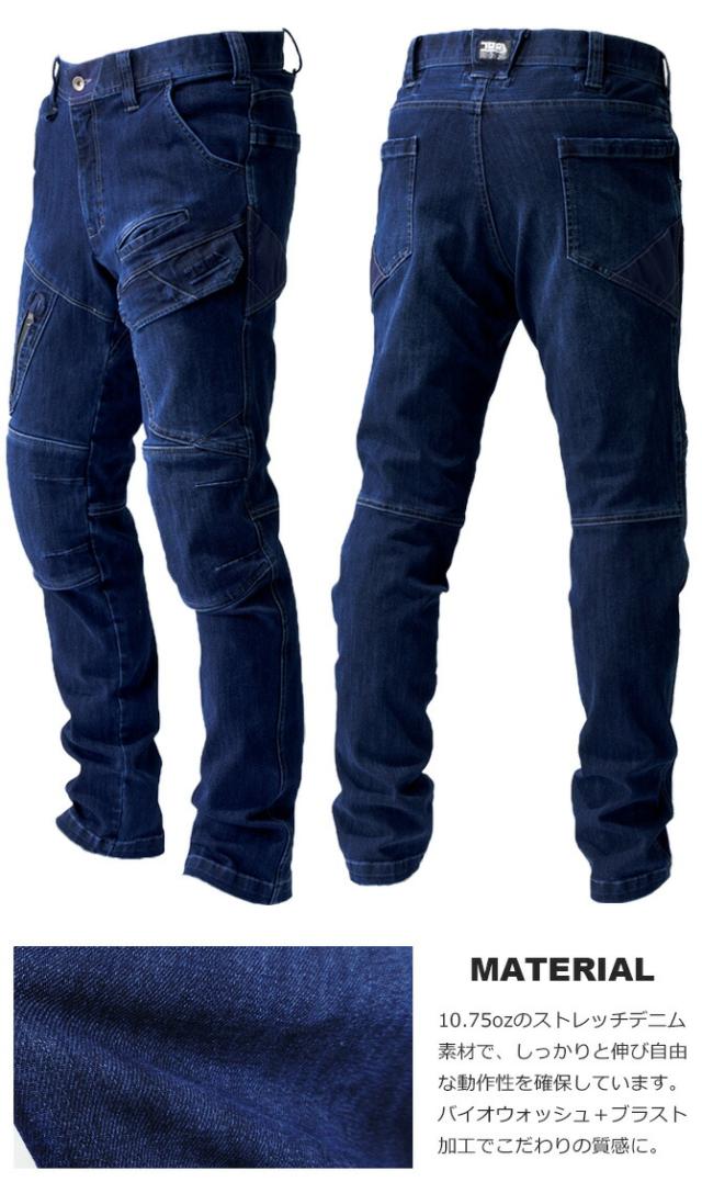 ストレッチデニムカーゴパンツ 寅壱 8910-219 メンズ オールシーズン 3Dパターン バイオウォッシュ ブラスト加工 ワークパンツ 作業服 作業着