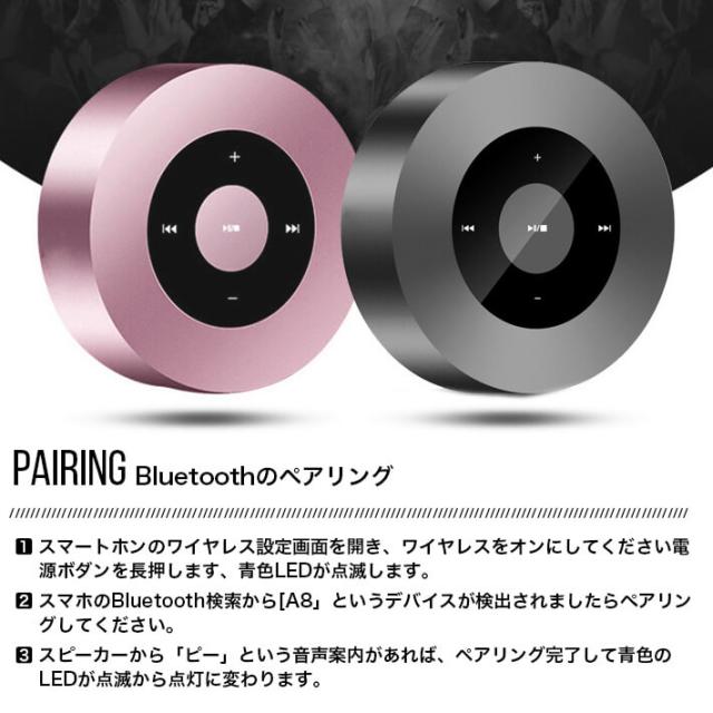 アルミ製 ワイヤレス スピーカー Bluetooth タッチ操作 超重低音スピーカー コンパクト ハンズフリー 通話搭載/ AUX/TF/ USBメモリーカード対応 1000mAHdai大容量 充電式 A8
