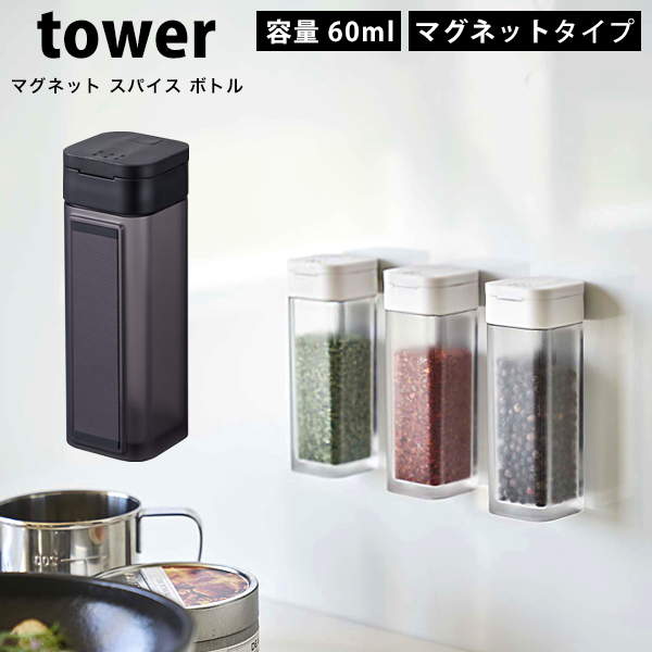 タワー マグネット スパイスボトル tower 調味料入れ 調味料 収納 おしゃれ 砂糖 塩 調味料ストッカー ホワイト ブラック 山崎実業 キッチン用品