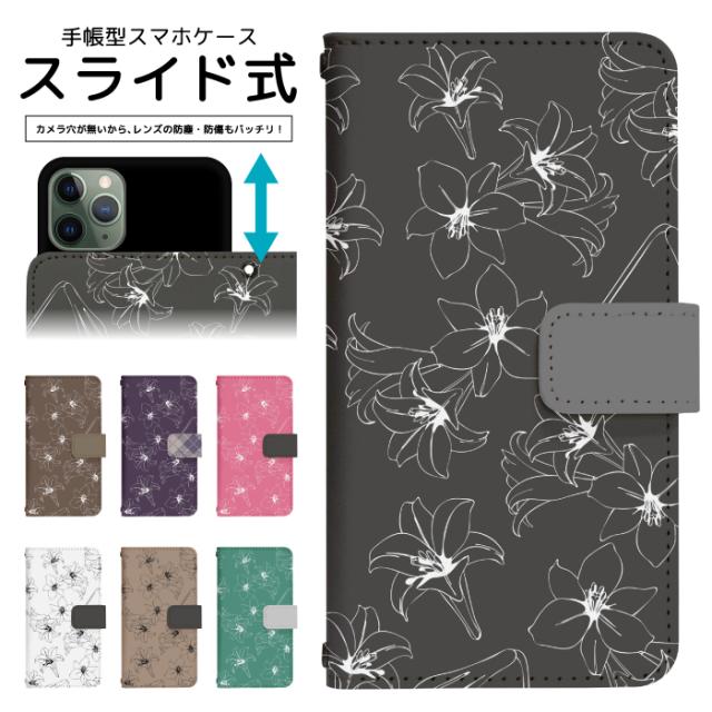 スマホケース 手帳型 全機種対応 スライド式 手帳型ケース iPhone 16e SE3 13 13mini 12 12Pro 12mini SE2 ケース アイフォン スマホカバー プリント 手帳 カバー スマホ 携帯ケース 携帯カバー 大人花柄 dslide744
